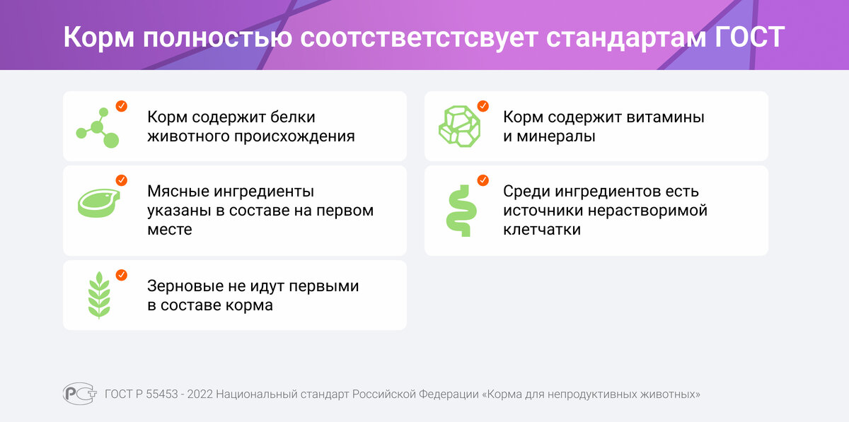 В Российской Федерации производители кормов обязаны руководствоваться ГОСТ Р 55453-2022.